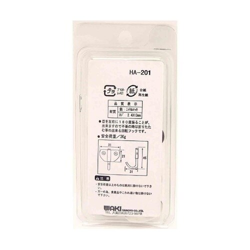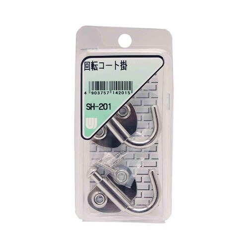 首を左右に180度振ることが出来ますので、不要の時は折りたたむ事の出来る回転フックです。コート等を掛けるのにご使用下さい。安全荷重以上のものは絶対に掛けないでください。 |