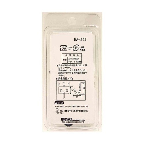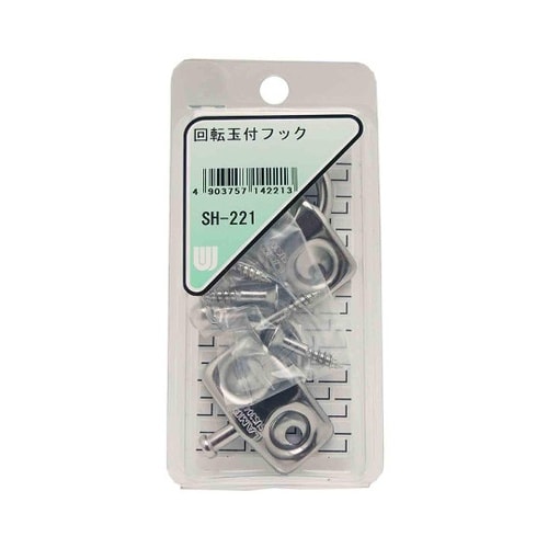 安全な玉付の先端をもつ新しい回転フックです。首を左右に180度振ることができますので不要の時はかさばりません。安全荷重以上のものは絶対に掛けないでください。 |