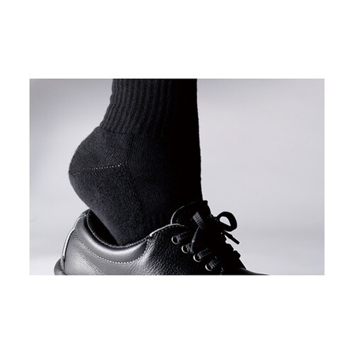 破れやすいつま先とかかとを、摩擦に強い高強度ポリエチレンで補強しました。底をパイル仕様にしてクッション性をアップしました。 |