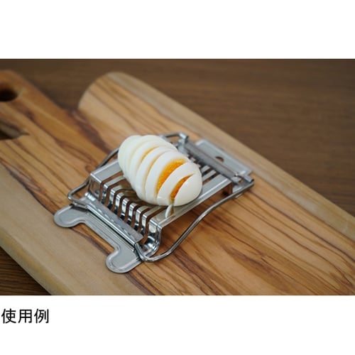 ゆで卵の黄身を潰さずキレイにスライスできます。丈夫なステンレスのワイヤーがスッとゆで卵に入り込み、身をくずしません。縦にスライス→回転して横にスライスすることで、みじん切りにも対応。 |