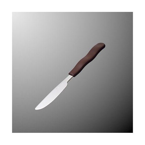 メラミン食器をキズつけにくい刃先。太めで波型のハンドルは、手にフィットしやすく、食器の縁から滑り落ちにくい形状。 |