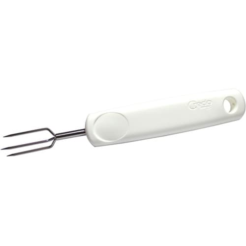 じゃがいもの皮をピーラーで剥くときに便利なポテトフォークです。アツアツで素手では持てないジャガイモにもおすすめです。ポテトフォークでジャガイモを刺し、皮むき器で皮をむきます。 |
