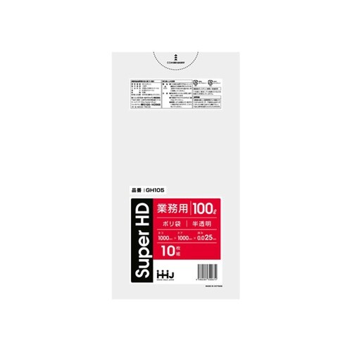 レジ袋のように、カサカサした感触が特徴の半透明のゴミ袋です。一枚あたり内容量は100Lです。引っ張りに強いです。10枚入りです。 |
