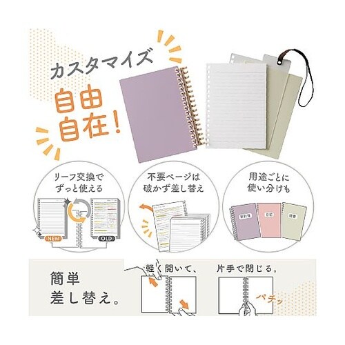 【カスタマイズオープンリングノート】選んで作る”自分だけのノート”オープンリングノート・ツイストノート<適合リーフ>対応無地の不透明10色展開。 |
