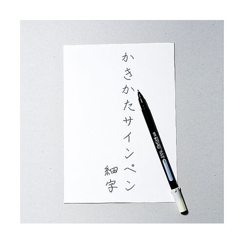 とめ・はね・はらいの表現しやすい特殊チップを使用。水に流れにくく、直射日光があたっても色あせしにくい顔料インキを使用。 |