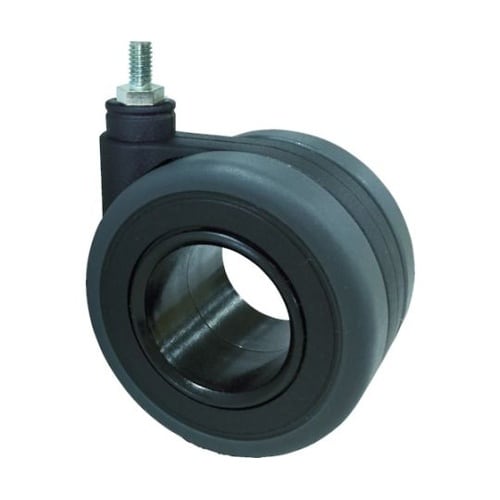 車輪中央部が空洞になっているデザイン性の高いキャスターです。ほこりなどが溜まりにくい形状にもなっています。シェルフ箪笥、ワイヤ家具、イス、デザインカートのホイールに使われます。 |