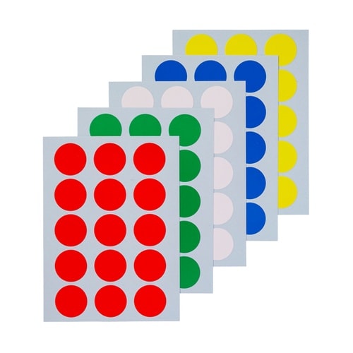 ラベル径:20mm | カラー:5色(赤、黄、緑、青、白) | 材質:コート紙 | ラベル入数:225片 | 単位:1個