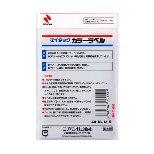 ニチバン マイタックカラーラベル 5色(赤、黄、緑、青、白)1個(225片入) ML−121N ML−121N 1個 A06C-5489