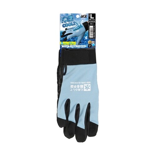 暑い季節の屋外作業や軽作業に適した冷感作業手袋。手袋を水に濡らして振るだけで、手元ひんやり。手の平部分はシリコンの滑り止め加工付きで、しっかりグリップ。