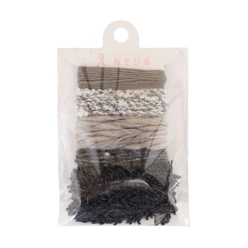 5種類の糸を各1mずつ巻いた「あそび糸」タッセルを作ってアクセサリーにしたり、リボンのように結んでオシャレにラッピングを楽しめます。