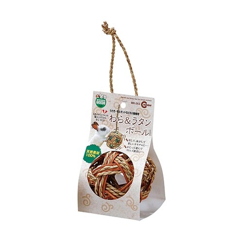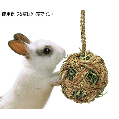 天然のわらとラタンの編み上げだから安心・安全です。またボールの中に、牧草を詰めて与えることも出来ます。 |