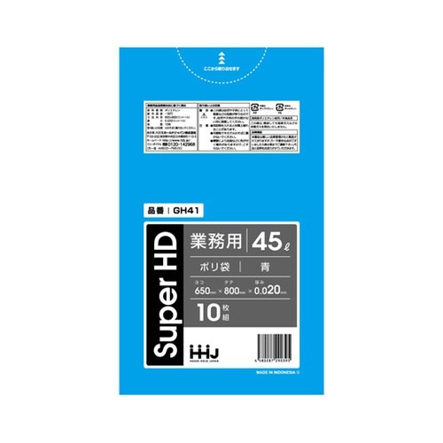 レジ袋のように、カサカサした感触が特徴の青色のゴミ袋です。一枚あたり内容量は45Lです。引っ張りに強いです。10枚入りです。 |