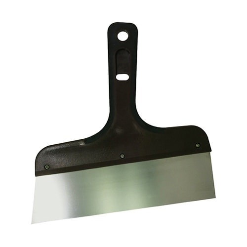 ステンレス製で先巾210mmの地ヘラです。錆びに強くパテや塗装剥がしなどの削り落としに適しています。持ち手部分がラバー製で手が滑りにくくなっています。 |