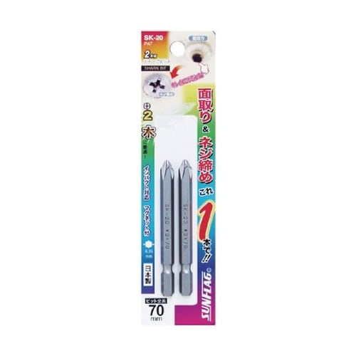 オリジナルの先端加工により、面取りとねじ締めの2つの機能を持つビットです。面取りすることによりフラットできれいに仕上がります。建築関連・家具組み立てなどに。 |