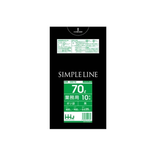 黒色のポリ袋10枚入りです。1枚あたりの容量は約70Lです。表面がツルツルタイプの袋です。柔らかく伸びやすい素材が使用されており、破れにくいです。 |