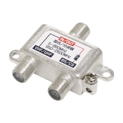 テレビアンテナ信号を地上デジタルとBS/CSに分けます。地上デジタルとBS/CSのアンテナケーブルを1本にまとめる混合器としても使えます。固定用ネジが付属します。 |