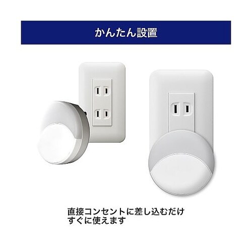 センサー部分がフラットでスタイリッシュなデザインです。直接コンセントに差し込むだけですぐにご使用いただけます。暗くなると自動的に点灯し、明るくなると消灯します。 |