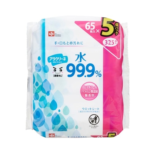 ウェットシート 激落ちくん アラクリーネ 水 99.9% 1セット(65枚×5個入) C00875 C00875 1セット