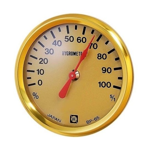 直径67mmの小型な湿度計です。背面に壁掛け用の穴があります。 |