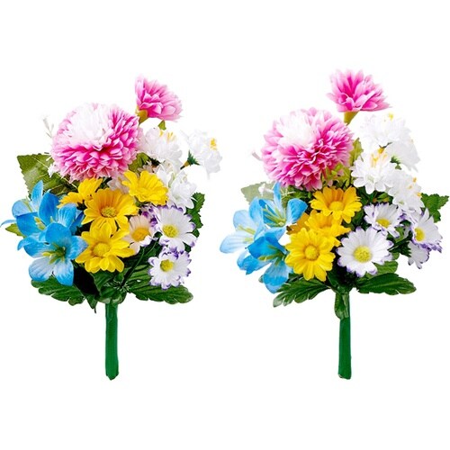 お墓・仏壇用のお供え花2束組。造花だから水やり要らずで、お手入れ不要!枯れる心配もなく、美しい色合いを長期間保てます。 |