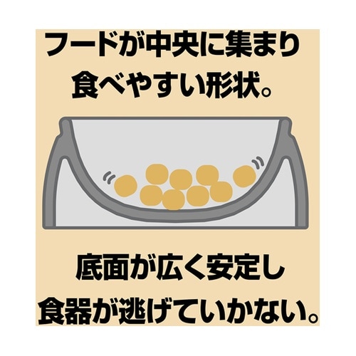 ストーンウェア製なのでにおいや汚れが付きにくい。取り外し可能な専用スベリ止め付き。電子レンジ・食洗機使用可能。インテリアに馴染むデザイン。フードが中央に集まり食べやすい形状。 |