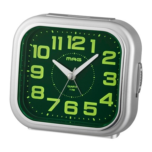 とにかく見やすい目覚まし時計。集光文字盤とライトで暗闇でも時刻が読みやすい。またコチコチ音の気にならない滑らかに進む連続秒針だから枕元でも安心してご使用いただけます。 |