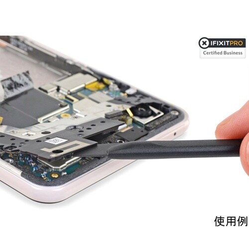 スマートフォンなど小型精密デバイスの修理作業に役立つ樹脂製ツールです。小さなコネクタを外したり、粘着テープを削り落としたり、細い電線を引っかけて保持したりといった細かい作業を快適かつ安全に行えます。 |