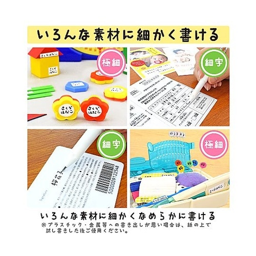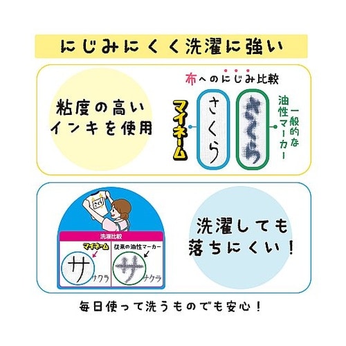 1インキ粘度が約2倍だから布に書いてもにじみにくく、洗濯しても落ちにくいです。2布・ビニール・金属・プラスチックなどへの名前書きに適しています。 |