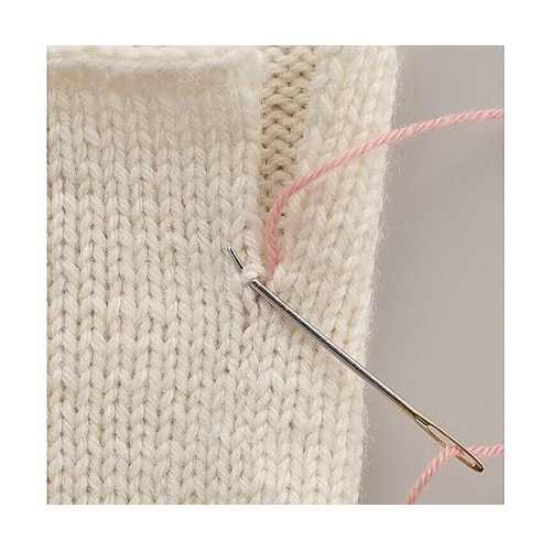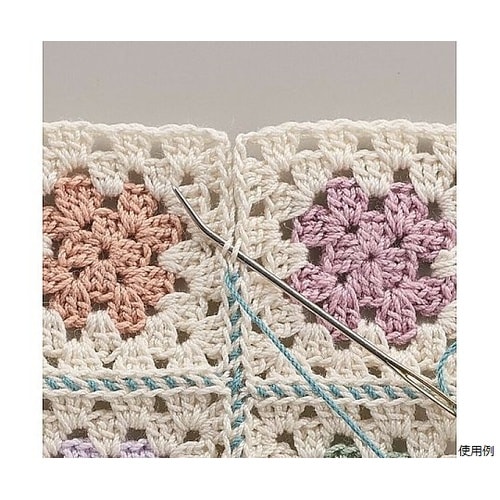 糸をすくいやすい針先形状なので、編み物のとじ(編地の段と段を繋ぎ合わせる)、はぎ(編地の目と目を繋ぎ合わせる)、巻きかがり(モチーフの編み目をすくってつなげる)などのときに便利。 |