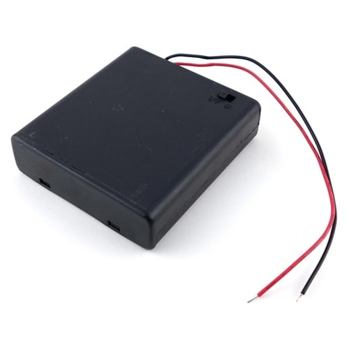単3電池4本用の電池ケースです。スイッチでON−OFFでき、フタとリード線も付いています。 |