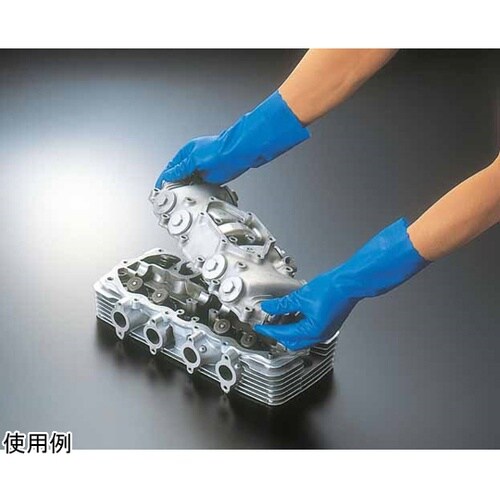 特殊配合の塩化ビニールを採用しているため、耐油性に優れています。耐久性のある丈夫な厚手タイプです。傷つきやすい指先は、2度漬け加工で強化しています。 |