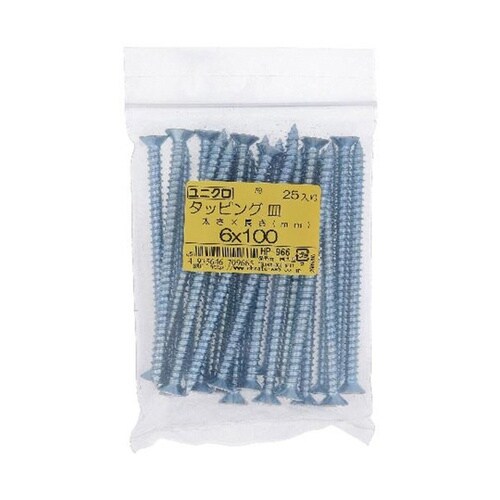 下穴をあけた鉄板などに使用するビスです。鉄製でユニクロめっきを施しています。皿頭です。 |