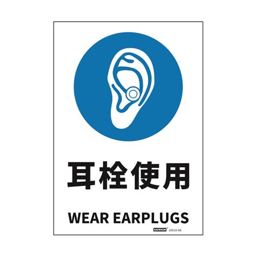 セーフラン安全用品 安全標識ステッカー 耳栓使用 178x254mm J2515−SS J2515−SS 1枚 A06E-3576
