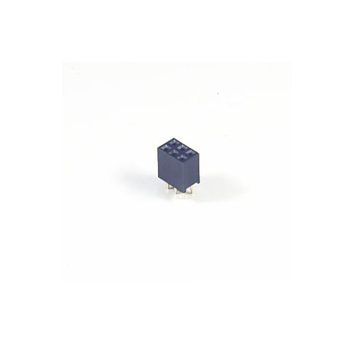 2.54mm(0.1inch)ピッチのピンソケット2列x3ピン=6ピンです。標準0.64mm角の角ピンヘッダーと勘合し丸ピンソケットやICソケットとは同じピッチでも互換性がありません。 |