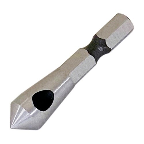 皿ビスの面取り、バリ取り等にご使用頂けます。穴あきタイプにより切屑のはけがスムーズです。6.35mm六角軸でドリルチャックにワンタッチで着脱可能です。※本来の用途以外で使用しないで下さい。 |