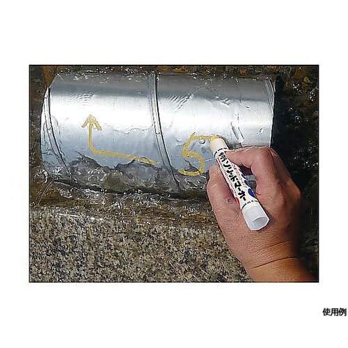 書きやすく便利・すぐ書けます。ボタ落ちがありません。ペンキのようにカクハンしなくてもよく、ハケや筆がいりません。筆やとき皿の後始末の必要がありません。上向きでも書けます。 |