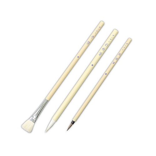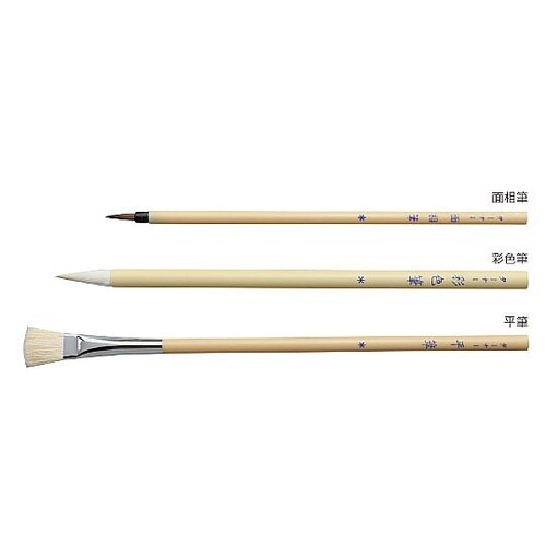 商品サイズ:全長・約230mm、穂先・約10×20mm | セット内容:面相筆(中)、彩色筆(中)、平筆4号 | 単位:1セット
