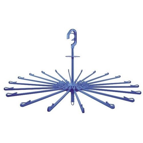 たっぷり干せる20本掛け大型サイズのハンガーです。竿に引っ掛けてはさめるスライドストッパー式です。アームの先には洗濯物のズレ落ちを防ぐクリップが付いているので、風の強い日でも安心してお使い頂けます。 |