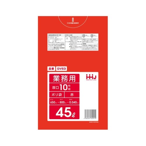 ハウスホールド ゴミ袋 45L 80×65cm 厚さ0.04mm 10枚入 赤 GV53 GV53 1袋 A06E-5551