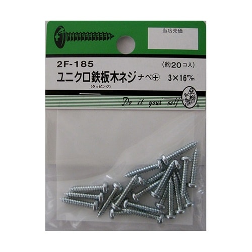ビーバー ユニクロ鉄板木ネジ ナベ+ 3×16mm 20個入 2F185 2F185 1パック A06E-6415