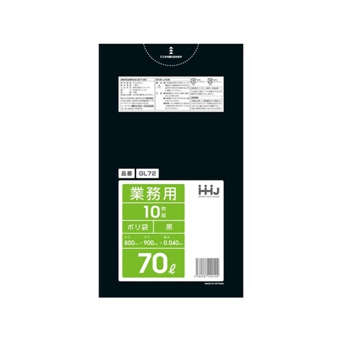 ハウスホールド ゴミ袋 70L 90×80cm 厚さ0.04mm 10枚入 黒 GL72 GL72 1袋 A06E-7372