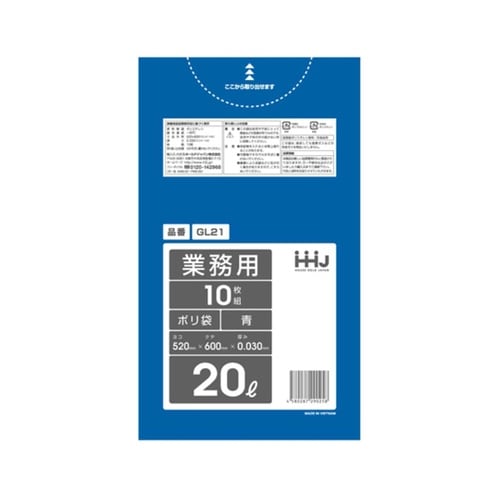 青色のポリ袋10枚入りです。1枚あたりの容量は約20Lです。表面がつるつるタイプの袋です。柔らかく伸びやすい素材が使用されており、破れにくいです。物理的強度に優れています。 |