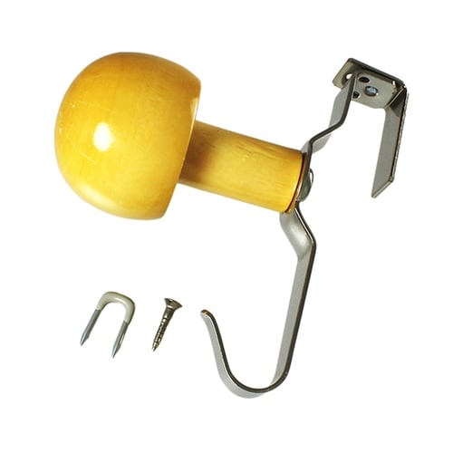手で押すか、木槌等で軽く叩くだけで簡単に取付できます。2段フックで小物もかかります。 |