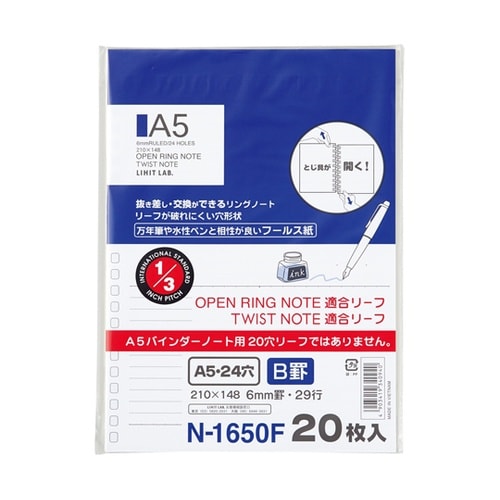 万年筆でも滲みにくいフールス紙。※A5サイズのオープンリングノート・ツイストノート<適合リーフ>対応です。 |