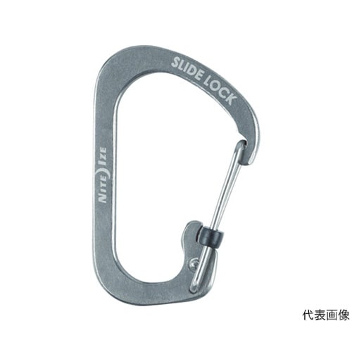 シンプルな形状のD型カラビナのゲートについたスライダーを上下させてロックできる、セキュリティ性の高いタイプです。スリムで丈夫です。 |