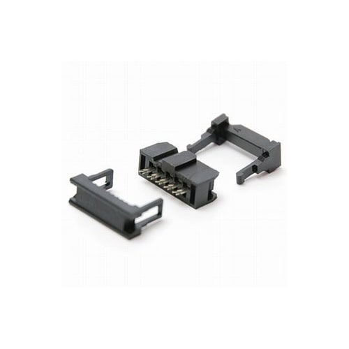 圧着工具は万力で代用できますが各ピンに垂直に力が加わるようにします。ペンチやプライヤーでは力が斜めになり失敗する危険があります。一般にmilコネクターと呼ばれる、フラットケーブル用圧着コネクタです。 |