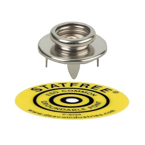 二又の10mm留め金具。内部が導電性層になっている多層式のマットへの取り付けに最適です押し込んで固定するだけなので、使い方が簡単でしっかりと固定できます共用接地点のシンボルラベル付き。