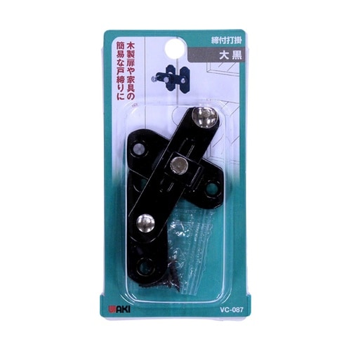木製扉や家具の簡易な戸締りに受座のネジを締め付けるとバーが固定されます木製扉(主に開き戸)や家具の簡易戸締りに取り付けの際、木部の割れやネジの破損を防ぐためキリで下穴を開けてください。 |