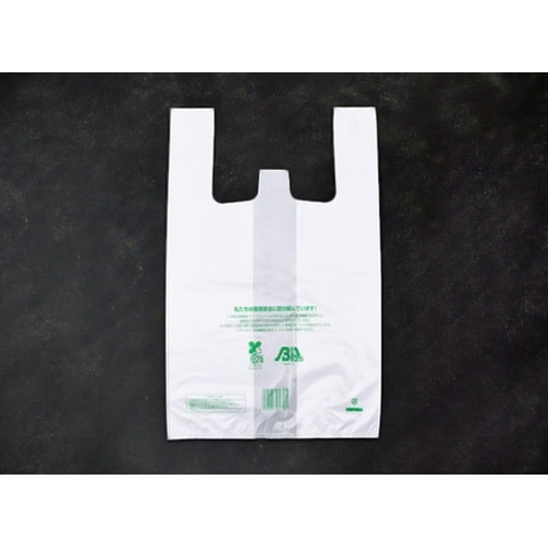 植物性(バイオマス)プラスチックを25%以上使用した、有料義務付け対象外のレジ袋です。環境配慮をアピールできるバイオマスマーク・文言の印刷入り。