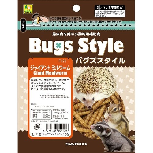 昆虫食を好む小動物用補助食!香ばしさと食感が良く、嗜好性が高いジャイアントミルワーム。タンパク質補給やおやつにピッタリの美味しい食材です。 |